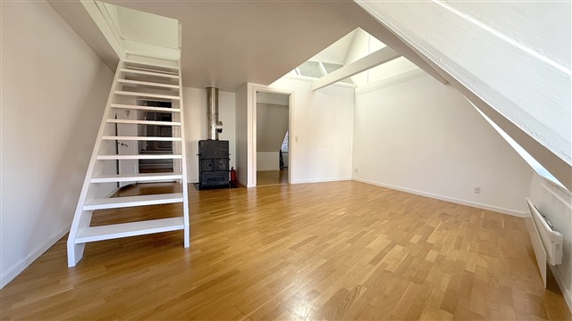 Denne lejlighed på 3. sal ligger kun et stenkast fra Kongens Nytorv samt det attraktive Ny Østergade-område. Boligen indeholder en indbydende stue, der både rummer et opholdsområde og plads til spisning. Her er et åbent loft til kip og en trappe, som fører op til en hems. Derudover findes der et mindre værelse, ideelt som soveværelse. Køkkenet er både hyggeligt og rummeligt med mulighed for en lille spiseplads, mens badeværelset er stort og udstyret med en bruseniche. Til lejligheden hører desuden en privat tagterrasse, som skaber et skønt udeområde. Ejendommen nyder godt af sin centrale placering midt i København, tæt på byens bedste udvalg af butikker, spisesteder og caféer, og der er kun få minutters gang til Metrostationen ved Kongens Nytorv.