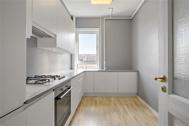 Denne flotte herskabslejlighed byder på en central placering i Aalborg, lige ved siden af Kennedy Arkaden og kun få minutters gang fra gågaden. Her får du chancen for at bo midt i byens kerne med nem adgang til byens faciliteter.Med sine 92 kvadratmeter rummer lejligheden et enkelt værelse samt en stue-suite med store vinduer, der lader masser af naturligt lys strømme ind. Loftshøjden er betydelig, og der pryder smukke arkitektoniske detaljer rummene, hvilket bidrager til en lys og åben atmosfære.