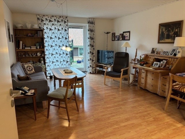 I V. Aaby ligger dette attraktive rækkehus i et plan, opført i 2004, med et samlet boligareal på 73 m². Boligen rummer en entré, et køkken, som er åbent mod stuen, et rummeligt badeværelse samt to værelser, der begge har indbyggede skabe.Forud for indflytning vil der blive lagt nye gulve i stue, køkken og værelser. Køkkenet er udstyret med køle-fryseskab, komfur og emhætte. Desuden er der mulighed for, at udlejer kan sørge for installation af både opvaskemaskine og vaskemaskine uden ekstra omkostninger for lejer.