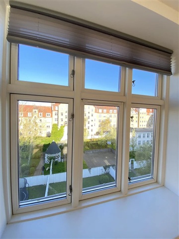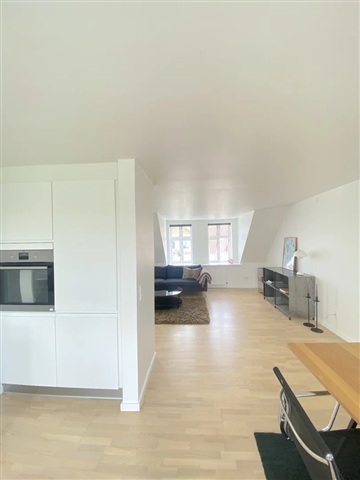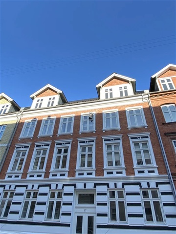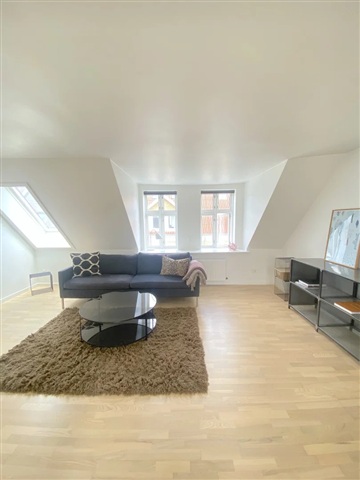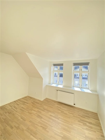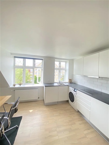 Denne bolig præsenterer en lys og indbydende atmosfære, hvor der er tænkt på både komfort og funktionalitet. Lejligheden, som står klar til indflytning, indeholder fire rummelige værelser med flotte trægulve, der bidrager til en varm og behagelig stemning. Den lyse opholdsstue er velegnet til både afslapning og sociale aktiviteter, idet store vinduespartier sikrer et godt naturligt lysindfald. Det moderne køkken er udstyret med både opvaskemaskine samt vaskemaskine og tørretumbler, hvilket gør de daglige gøremål mere bekvemme. Herfra kan man samtidig nyde en fin udsigt over de nærliggende gader. Badeværelset er designet i et stilrent og praktisk format, så det opfylder alle daglige behov.Til ejendommen hører et attraktivt gårdmiljø, der tilfører en fredelig og grøn oase midt i byens travlhed. Det udendørs areal skaber en god ramme for afslapning og socialt samvær, hvor man kan nyde frisk luft og solskin.