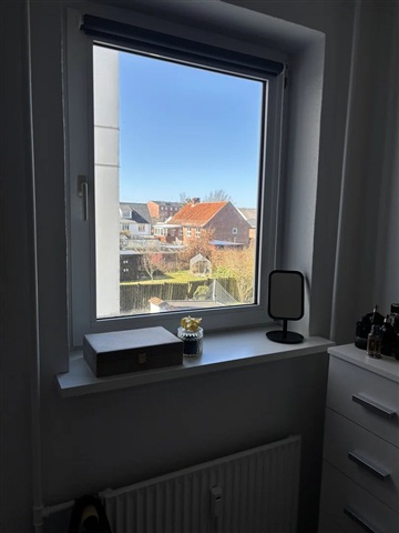 Denne 2-værelses lejlighed fremstår med en lys og indbydende atmosfære og er klar til indflytning. Boligen er centralt placeret i Frederikshavns bymidte og byder på en rolig og behagelig stemning.Planløsningen indeholder en fordelingsgang, der fører til et praktisk køkken med rigelig plads til madlavning samt spisning. Det store soveværelse har vindue ud mod ejendommens grønne have, hvilket skaber en rolig og afslappende atmosfære. Stuen er præget af lyse rum og egner sig godt til både afslapning og samvær.