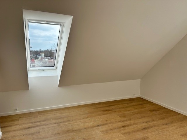 På 1. salen er der to lyse værelser af varierende størrelse med smukke kviste og ovenlysvinduer samt et rummeligt badeværelse.