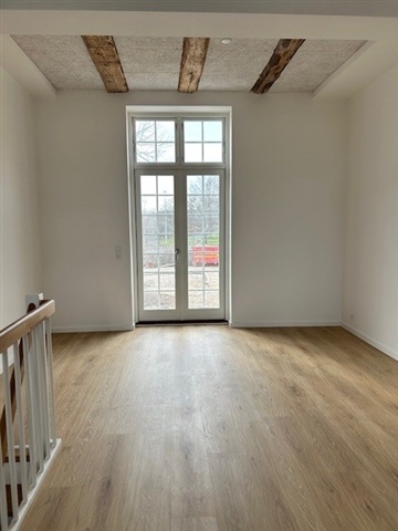 Husets samlingspunkt er det store højloftede køkken alrum med fritlagte bjælker, hvor til der er direkte adgang til gården via en lille trappe. I stuen/alrummet er der store smukke palævinduer, som giver et fantastisk lysindfald.