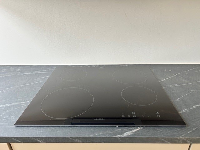 Det veludstyrede køkken har skabsmoduler fra SVANE og alt i hårde hvidevarer, herunder integreret køle-/fryseskab og opvaskemaskine fra Siemens samt induktionskogeplade og ovn fra Siemens.