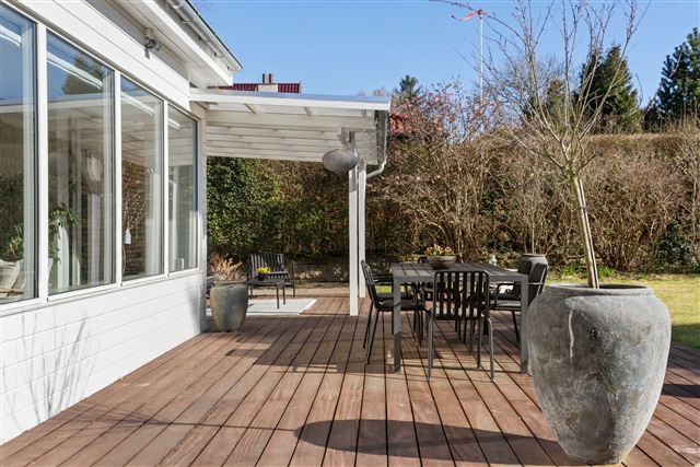 Haven er et dejligt udendørsareal, der egner sig godt til både leg, grill og afslapning på solrige dage, og den overdækkede terrasse giver mulighed for at nyde udendørslivet, selv når vejret ikke er til det helt store. Alt i alt er der tale om en sjælden chance for at etablere familielivet i et trygt, levende og eftertragtet kvarter, hvor dagligdagen harmonerer godt.