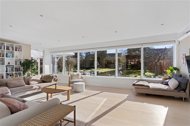 Prins Valdemars Vej byder på en attraktiv bolig, som er ideel for familier, der ønsker at bo i et af Gentoftes mest efterspurgte områder. Denne ejendom udgør et trygt hjem med lyse og rummelige opholdsrum, hvor der er god plads til både samvær og afsondrethed. Boligens funktionelle planløsning er tilpasset behovene for en moderne familie, og den fremstår indbydende og velindrettet.Huset indeholder i alt fire værelser, som alle er veludnyttede, og derudover findes to ekstra disponible rum i kælderen. Stueetagen rummer tre soveværelser, et badeværelse og et stort køkken-alrum, der smelter sammen med stuen, hvor dagslyset strømmer ind. På første sal finder man et stort soveværelse, et repos med udgang til en tagterrasse og et ekstra værelse, der aktuelt anvendes som en walk-in garderobe, men som let kan omdannes til et ekstra værelse efter behov. Kælderen indeholder desuden et badeværelse og et bryggers, og alle hårde hvidevarer medfølger naturligvis i lejemålet.