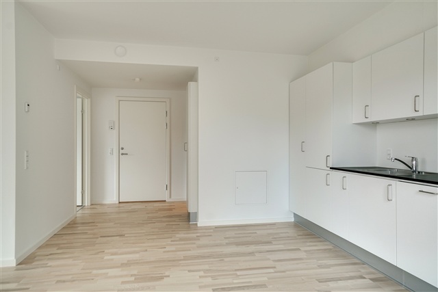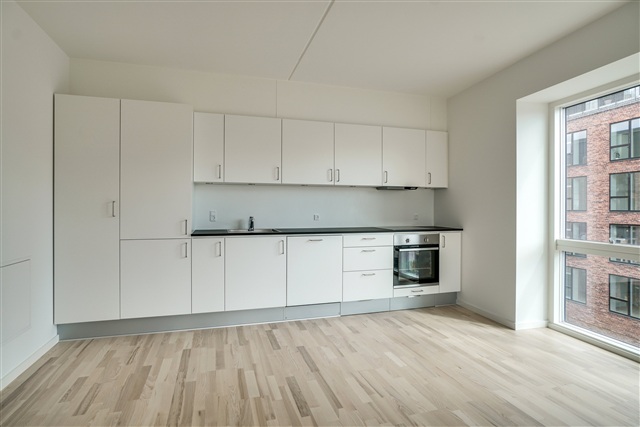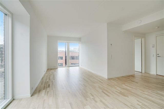 I hjertet af Valby ligger denne nyopførte ejendom, som rummer en moderne og velindrettet lejlighed. Boligen, der er ideel for både par og mindre familier, byder på en gennemtænkt planløsning og anvendelse af kvalitetsmaterialer. Bygningen fremstår med en facadesammensætning af mursten og metalplader på øverste etage, hvilket tilføjer et råt, arkitektonisk udtryk. Udefra bemærkes de store vinduespartier samt altanerne, som giver liv til facaden og bryder dens ellers ensartede udtryk.Indgangspartiet er i åben forbindelse til resten af lejligheden og indeholder et rummeligt fast indbygget skab, der er velegnet til opbevaring af overtøj. Badeværelset har en bruseniche og er tilstrækkeligt stort til at rumme en vaskesøjle. Lejlighedens soveværelse imponerer med sin rummelighed og det flotte naturlige lysindfald. Opholdsstuen udgør den største del af boligens kvadratmeter og præsenterer sig med lyse, moderne detaljer, smukt gulvbelægning og store vinduer. Køkkenets funktionelle og pladsbesparende installation er placeret langs én væg, hvilket gør det åbne opholdsrum til et alsidigt og indbydende område. Fra stuen er der adgang til et praktisk depotrum, et stort vinduesparti samt en terrassedør, der åbner ud mod en sydvendt altan med udsigt til det omgivende nabolag.