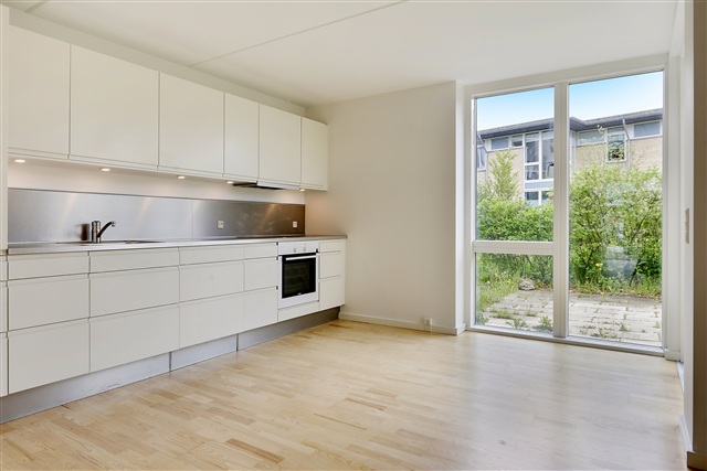 I et roligt og familievenligt område i Vallensbæk præsenterer sig dette velholdte rækkehus, der kan lejes uden tidsbegrænsning. Boligen, opført i 2008 af mursten, byder på en gennemtænkt indretning fordelt over to etager samt en charmerende, mindre have til glæde for både børn og voksne. Den markante detalje med boligens høje vinduer på både stueplan og førstesal sørger for et hjem fuld af naturligt lys, der skaber et indbydende og åbent miljø.Foran huset findes en stenbelagt forhave, som let kan indrettes med et lille cafésæt, og straks man træder indenfor, mødes man af et behageligt opholdsrum. Her går en rummelig stue i ét med køkkenet og giver mulighed for både et stort spiseområde og en komfortabel sofaafdeling. Fra stuen og køkkenet er der direkte forbindelse til udearealerne, henholdsvis til forhaven og via en havedør ud til terrassen i baghaven. Køkkenet er pænt vedligeholdt med stilrene, hvide og grebsfrie fronter, som vidner om en moderne designlinje, og her er plads til en mindre spiseplads. Et gæstetoilet og et fyrrum fuldender stueetagens faciliteter, inden man tager trappen op til førstesalens fordelingsgang.