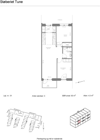 I det naturskønne område i Tune, en bydel tæt på Hovedstadsregionen, ligger disse nyopførte etagebyggerier placeret i det eftertragtede Støberiet Tune. Lejligheden lægger vægt på både kvalitetsmaterialer og funktionel indretning med fokus på æstetik. Boligen består af en kombineret stue og køkken i et åbent koncept, to soveværelser samt et badeværelse. Til lejligheden hører enten en altan eller en terrasse, afhængig af etagen.De boliger, der er placeret i stueetagen, er forsynet med terrasse, mens lejlighederne på første og anden sal har altaner. Derudover medfølger et skur som depotrum. Hårde hvidevarer omfatter kølefryseskab, indbygningsovn, kogeplade, emhætte, opvaskemaskine samt vaskemaskine og tørretumbler. Ejendommen består af i alt 86 lejligheder fordelt på tre etager og har elevator. En enkelt hund eller kat er tilladt uden størrelsesbegrænsning. Opvarmningen sker via gulvvarme, der forsynes med fjernvarme, og internetforbindelsen leveres gennem TDC Fibernet.