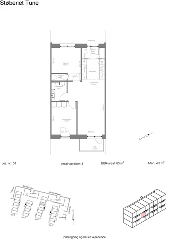 I Tune, en veletableret forstad til hovedstadens område, finder man disse nyopførte lejligheder placeret i det attraktive område Støberiet Tune, tæt på naturskønne omgivelser. Lejligheden byder på en gennemtænkt indretning med fokus på kvalitetsmaterialer og æstetik. Boligen indeholder et åbent samspil mellem stue og køkken, to soveværelser samt et badeværelse, og der er adgang til enten en altan eller terrasse alt efter lejlighedens placering.Udearealerne består af terrasser ved lejligheder i stueplan, mens etagerne over har altaner. Der medfølger desuden et separat depotrum i form af et skur. Køkkenet er fuldt udstyret med hårde hvidevarer, herunder kølefryseskab, indbygningsovn, kogeplade, emhætte, opvaskemaskine samt vaskemaskine og tørretumbler, som alle hører til lejemålet.