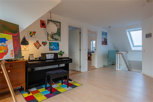 Det store køkken-alrum, som ligger i åben forbindelse med stuen, udgør husets centrum. Rummet byder på gode betingelser for madlavning, samvær og afslapning i et lyst og sammenhængende miljø. Stuen er rummelig og skaber en varm atmosfære, der egner sig til hyggelige stunder med både familie og venner.