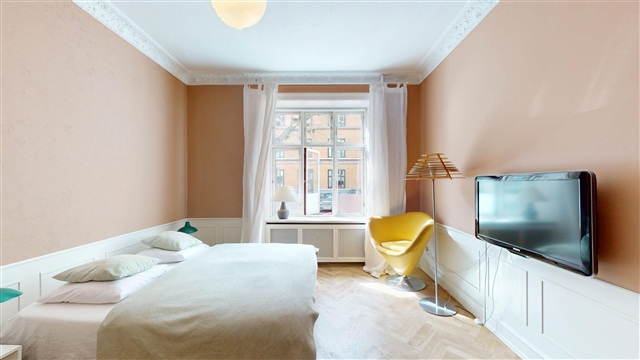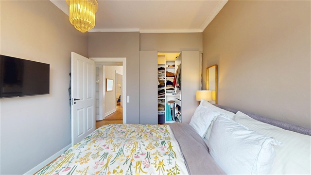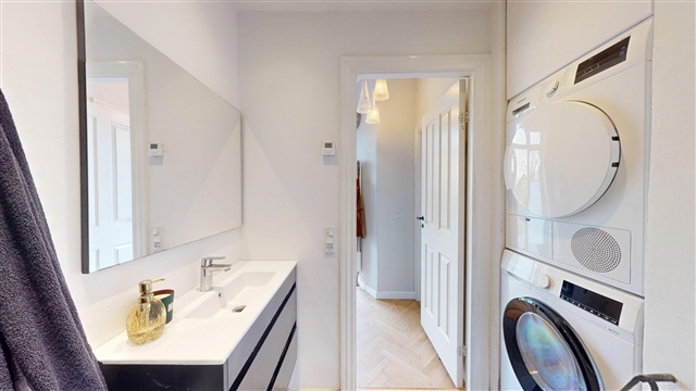 Denne rummelige lejlighed ligger på Johnstrups Allé midt i Frederiksberg C og er indrettet med fem eller flere værelser, hvilket gør den velegnet til både familier og dem, der ønsker rigelig plads. Du finder adskillige soveværelser samt lyse værelser til børn, som giver gode muligheder for fleksibel udnyttelse af boligens rum.Der er to badeværelser i boligen; et af dem er udstyret med badekar og installeret gulvvarme, hvilket øger hverdagskomforten. Køkkenet er praktisk udformet og indeholder både et fuldt køle- og fryseskab. Opbevaringsplads sikres yderligere via indbyggede skabe samt et funktionelt walk-in closet.