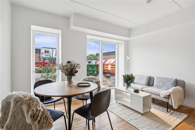 Den attraktive beliggenhed betyder, at caféer, restauranter, butikker, offentlig transport og kulturelle tilbud befinder sig inden for kort rækkevidde, hvilket gør Hjørnekarreen til et ideelt valg for dem, der ønsker en kombination af moderne byliv og høj kvalitet samt komfort. Lejligheden rummer en entré med plads til overtøj, et badeværelse med en vaskemaskine og tørretumbler, et lyst køkken fuldt udstyret med hårde hvidevarer, samt en stue med alrum, der kan afgrænses til et soveområde. Desuden er der en terrasse tilknyttet boligen.