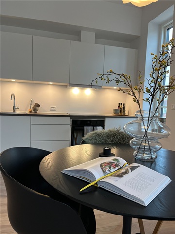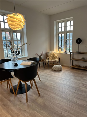 Denne charmerende 2-værelses lejlighed står snart klar til at tage imod nye beboere. Beliggenheden kombinerer fordelene ved at bo centralt i en hyggelig by med nærhed til skovområder, hvor der er gode muligheder for både motion og gåture - hvad enten man har hund med eller foretrækker at gå alene.Boligens opvarmning sker via gulvvarme, og køkkenet er installeret med moderne HTH-elementer samt komplette hårde hvidevarer. Badeværelset er indrettet med bruseniche og har samtidig etableret plads til en vaskesøjle. Køkkenet ligger åbent i forbindelse med stuen, som har udgang til en balkon, mens soveværelset fremstår pænt og funktionelt.