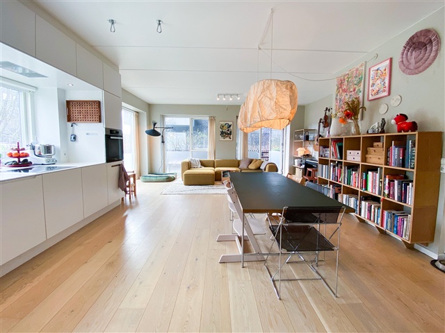 Denne lejlighed i stueplan byder på en generøs størrelse på 122 m², hvor pladsen er optimalt udnyttet uden unødvendige arealer. Med i alt tre separate soveværelser tilbyder boligen en nærmest villaagtig atmosfære. Rundt om hele lejligheden findes flere terrasser, der sikrer mulighed for at følge solens gang fra tidlig morgen til sen aften. Lejeforholdet træder i kraft den 1. august 2026 og løber over en periode på mellem 3 og 5 år.