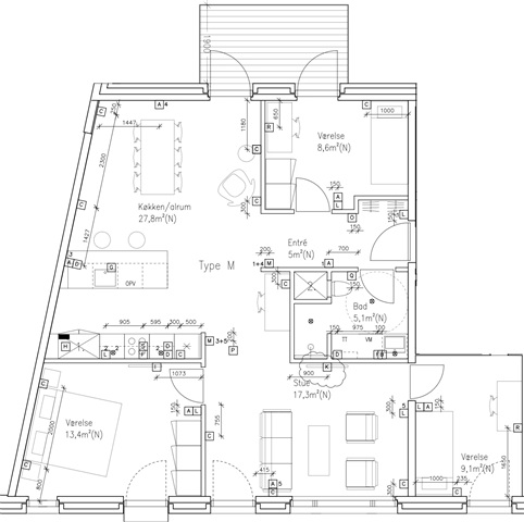 Da lejligheden netop er blevet fraflyttet, anvendes der henvisningsbilleder fra en anden bolig i samme bygning.