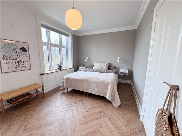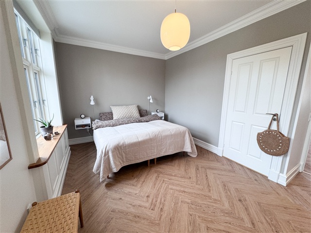 Fra køkken-alrummet er der adgang til to værelser, som med fordel kan anvendes som børneværelser, gæsteværelse eller kontor. Desuden findes et stort soveværelse med rigelig plads til større møblement og med flere vinduer, der skaber en lys og behagelig atmosfære.
