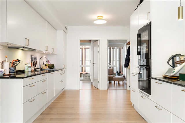 I det centralt beliggende Kjeldahl Hus i Carlsberg Byen, lige overfor den fredede Mineralvandsfabrik, udbydes nu en rummelig 5-værelses lejlighed med fire separate soveværelser. Lejligheden indeholder et generøst køkken-alrum, som har udgang til en altan med en solrig sydvestvendt orientering, hvilket giver plads til hele familien. Master bedroom har direkte forbindelse til det ene af de to moderne badeværelser i boligen. Ud mod Kjeldahl Hus strækker den lille, charmerende smøge Flaskehalsen sig, præget af en pergola og små, hyggelige butikker. Bygningen ligger desuden tæt på flere torveområder med caféer og restauranter, hvor man kan nyde udelivet. For naturelskere er J.C. Jacobsens Have kun 50 meter væk, mens både Søndermarken og Frederiksberg Have kan nås efter omtrent ti minutters gang. Carlsberg Station ligger inden for nogle få hundrede meters afstand, og Metroen kan også nås til fods i kort tid. Samlet set tilbyder denne lejlighed en veludnyttet planløsning med en fin udsigt i en attraktiv og praktisk beliggenhed.
