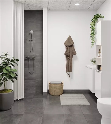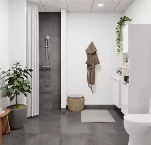 Badeværelset er udformet med fokus på kvalitet og stil, prydet med flotte fliser og en gennemtænkt finish, og det ligger hensigtsmæssigt placeret i forhold til både soveværelser og opholdsarealer. Ved indgangen findes en entré, som fører til et teknikrum, der ligger i en mellemgang, og herunder er plads til både vaskemaskine og tørretumbler. Udenfor tilbyder den private terrasse rig mulighed for at nyde udelivet, og der følger desuden et udhus på 4 m² med til opbevaringsformål.