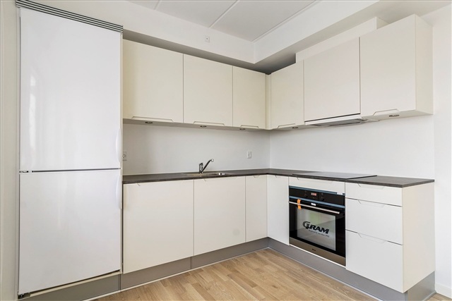 Lejligheden byder på velvalgte materialer i et tidløst og elegant udtryk. Badeværelset er lyst og indeholder installationer klar til vaskemaskine, hvilket øger funktionaliteten. Den rummelige bolig fremstår ekstra lys takket være de store vinduespartier, som også sikrer adgang til en generøs terrasse.Bygningen, som blev opført i 2017, rummer både cykelparkering samt et privat depotrum i kælderen. Derudover hører gratis parkeringsmuligheder til ejendommen, hvilket letter hverdagens logistik.