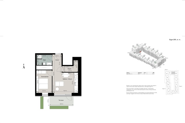 Projektet skal fungere som et samlingspunkt for både de nye beboere og områdets besøgende og omfatter en karrestruktur med lejligheder fra én til fem værelser. Et markant hjørnehus indeholder samtidig parkeringsfaciliteter i stueplan samt 2-værelses lejligheder, mens et grønt gårdmiljø er placeret på bygningens tag. I stueetagen skaber blandt andet COOP 365, forskellige specialbutikker og eventuelle restauranter en livlig og nærværende atmosfære, som bidrager til dagligdagens bekvemmeligheder. Fra lejlighederne på de øvre etager kan man nyde godt af både lysindfald gennem de store vinduer og udsigten over området.