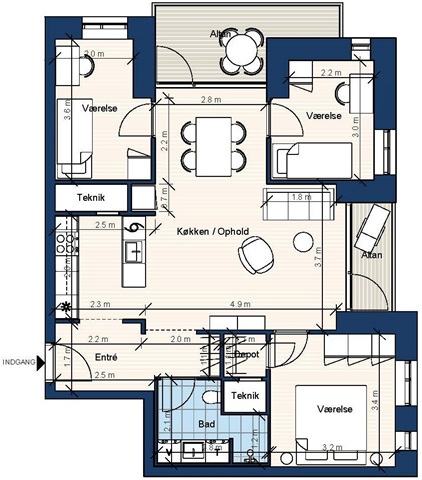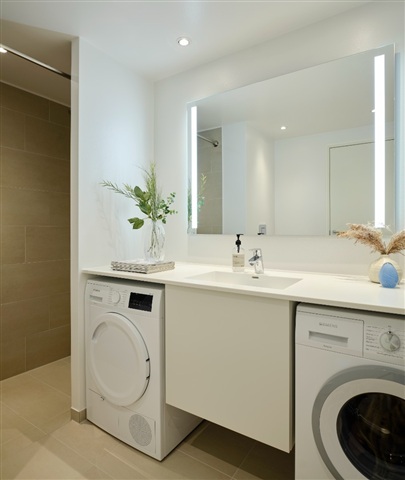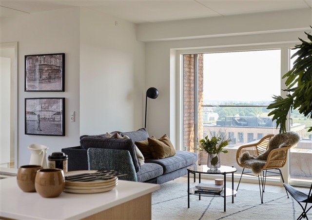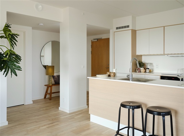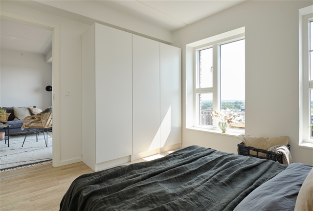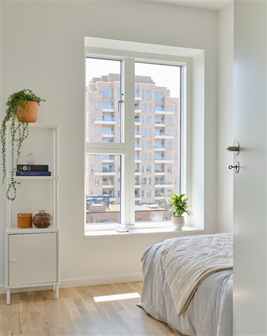 Denne nybyggede lejlighed rummer fire værelser og byder på hele to altaner med forskellig orientering - én mod syd og én mod øst. Fra begge udearealer er der udsigt til Frederiksbro Parken samt det beskyttede naturområde Bøllemosen, hvilket giver gode muligheder for at opleve den omkringliggende grønne natur.Boligens køkken er designet af Invita og er fuldt udstyret med Siemens hårde hvidevarer. I umiddelbar tilknytning til køkkenet ligger stuen, som har udgang til begge altaner. Herfra kan du opholde dig i rolige omgivelser og nyde udsigten over Frederiksbro og de omkringliggende områder. Tre værelser er alle indrettet med faste skabe, og lejligheden rummer desuden et depotrum til ekstra opbevaring. Overalt i boligen findes gulvvarme, mens badeværelset er udstyret med både vaskemaskine og tørretumbler af mærket Siemens.