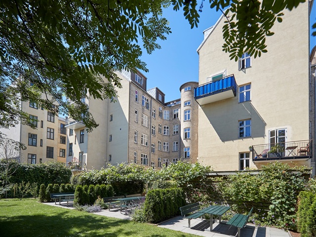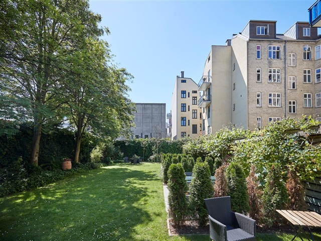 Denne flotte herskabslejlighed er nu til salg i en klassisk ejendom fra 1881, der fremstår særdeles velbevaret. Her mødes tidens charme med moderne bekvemmeligheder i en bolig, hvor hver eneste detalje bidrager til dens unikke stemning.Ejendommen omkranser en stor, aflukket fælles gårdhave, der er både charmerende og fredelig. Området er indrettet med havemøbler, cykelskur og legeplads, hvilket skaber et roligt og grønt pusterum midt i byen, hvor man kan finde ro uden at bevæge sig væk fra det pulserende byliv.