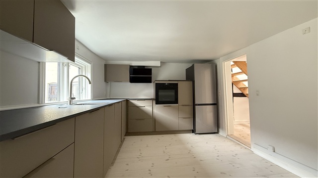 I det attraktive Ny Østergade-område ligger denne charmerende lejlighed placeret på tredje sal og fordelt over to etager. På underetagen mødes man af en indbydende stue, der rummer både plads til et hyggeligt opholdsområde og en spiseplads, hvor der desuden er installeret et indbygget skab til opbevaring. Køkkenet, som er funktionelt indrettet, indeholder blandt andet både opvaskemaskine samt en kombineret vaskemaskine og tørretumbler. Herfra er der direkte adgang til badeværelset, som er udstyret med en bruseniche. Fra stuen fører en trappe op til øverste plan, hvor to værelser befinder sig; et dagligstue-agtigt rum med adgang til soveværelset.Ejendommen har en attraktiv beliggenhed midt i København, tæt på byens mange tilbud af butikker, spisesteder og caféer. Metrostationen Kongens Nytorv kan nås til fods på få minutter, hvilket sikrer nem adgang til offentlig transport.
