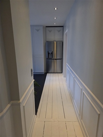 Jeg udlejer et mindre værelse på cirka 8-9 m², som egner sig godt til pendlere eller udstationerede, da jeg kun søger en roomie til delvis brug af rummet.Hvis det ønskes, kan værelset leveres delvist møbleret. Lejer får adgang til et stort og rummeligt køkken, som er udstyret med et LG-køleskab, en Gaggenau-komfur samt en SMEG-ovn. Badeværelset er også generøst i størrelsen og har et separat bruseområde samt belysning ved spejlet. Der bliver foretaget professionel rengøring hver anden uge.