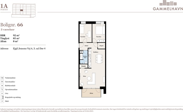 Denne 3-værelses lejlighed er disponeret med en funktionel udnyttelse af pladsen, som tilgodeser de daglige behov. Boligen består af tre veldefinerede rum, der let kan arrangeres med et charmerende opholdsområde og ét eller to soveværelser, afhængigt af dine ønsker og behov. Det primære fællesrum rummer tilstrækkelig plads til både et komfortabelt sofahjørne og en spisesituation, hvilket skaber gode muligheder for afslapning, arbejde og socialt samvær. I lejligheden findes desuden et køkken, der er tilpasset daglig madlavning, samt et badeværelse med et klassisk design, som indeholder en vaskesøjle til praktiske formål. De resterende rum egner sig ideelt som soveværelse, børneværelse eller kontor i hjemmet. Denne bolig passer godt til par, små familier eller personer, der ønsker lidt ekstra plads og fleksibilitet i deres hverdag.* 3D-scanning og fotografier stammer fra en tilsvarende modelbolig