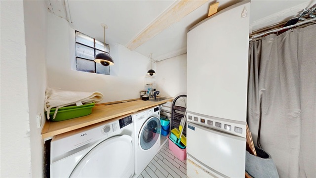 Udendørs findes en velholdt og attraktiv have, der tilbyder privat og fredelig udendørsplads midt i byen, perfekt til både afslapning, leg og hyggelige timer i solen. Boligen udlejes fuldt møbleret, hvilket betyder, at man kan flytte ind uden det store besvær. Dette gør det til et oplagt valg for dem, der ønsker en nem og eksklusiv boligoplevelse fra start.