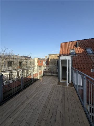 Boligen fremstår lys, moderne og indbydende med et stilfuldt køkken og badeværelse, hvor der er anvendt materialer af høj kvalitet. Samtlige opholdsrum er rummelige og har rigeligt med naturligt lysindfald. Fra et af værelserne er der direkte adgang til en skøn, privat tagterrasse på cirka 25 kvadratmeter.