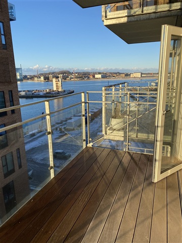 Denne lejlighed, der er klar til øjeblikkelig indflytning, kombinerer lysindfald og moderne faciliteter i en eftertragtet del af Aalborgs havneområde. Boligen udstråler en rolig og behagelig atmosfære.Indretningen omfatter en stor stue med vinduer, som tilfører rummet rigeligt dagslys, og en åben planløsning, der skaber en imødekommende atmosfære. De to værelser er af en god størrelse og kan indrettes fleksibelt efter individuelle behov. Stuen og køkkenet er udformet i en sammenhængende løsning, der understøtter et socialt og livligt miljø.